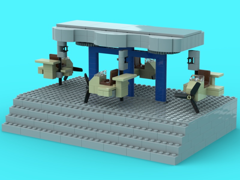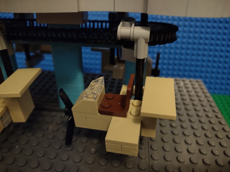 Nu har jag fått hem bitarna, och kunde börja bygga. Återstår att bygga flygplanen (propellrarna jag fick hem var väldigt stora, måste kolla om det finns mindre - tror de jag hade på 80/90-talet var mindre). Just nu har jag en liten temporärlösning för att få upp taket, men jag måste kolla om det räcker, och i så fall göra den mer permanent.