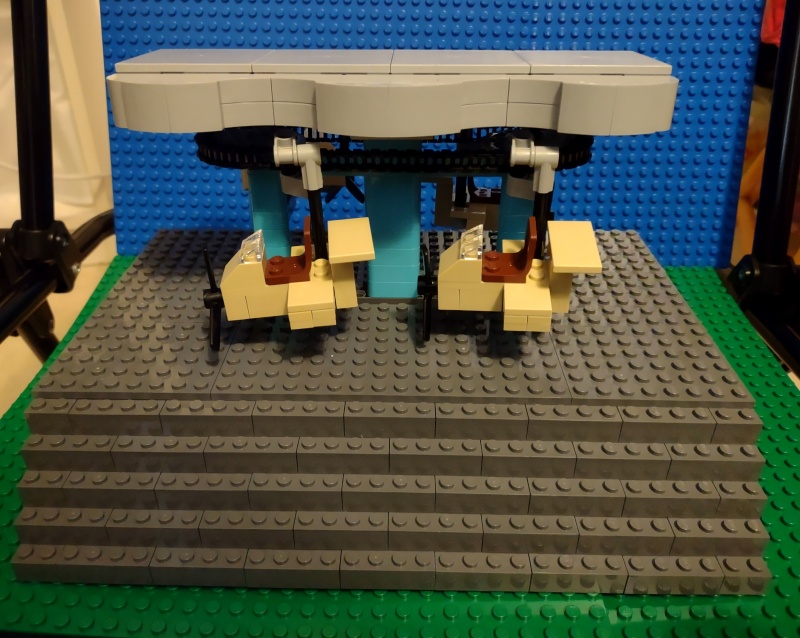 Nu har jag fått karusellen att fungera. Ett problem är att taket skakar märkbart vid körning (inte helt oväntat), märks mindre om man kör utan tak. Kanske blir bättre om man kopplar ihop karuselltaket med något annat bygge?